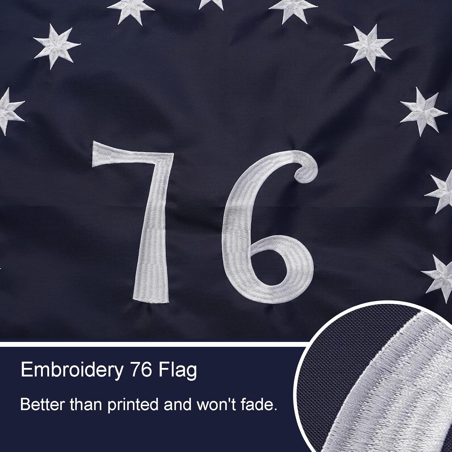 - Embroidered Betsy Ross Flags - To change the printing process, we use embroidery to make this face look more delicate. The 1776 Flag is 3x5 feet. Perfect for putting it on a flagpole, decorate your home.