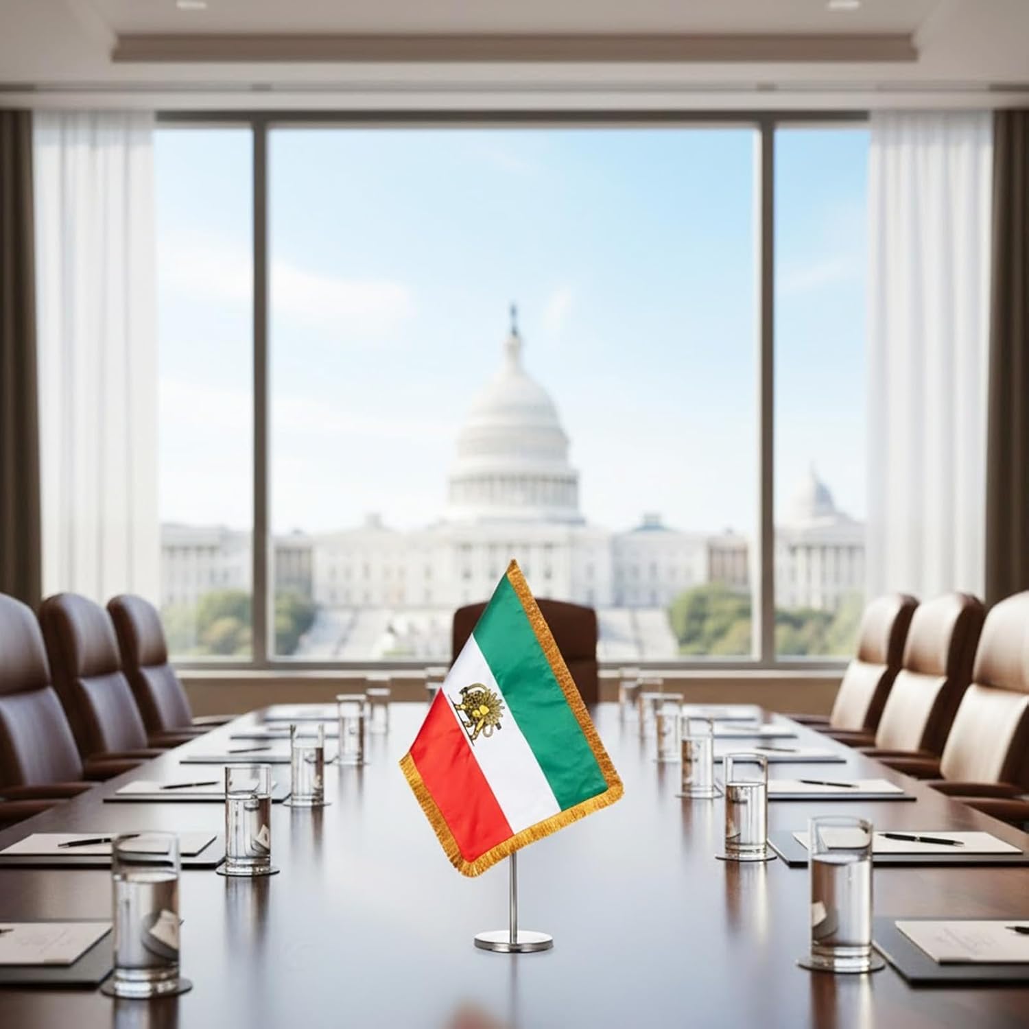 - 💟【Update Iran Table Flag】- Old Historic Iran with Lion Crown Post-Constitutional Revolution with table stand is more convenient to display.